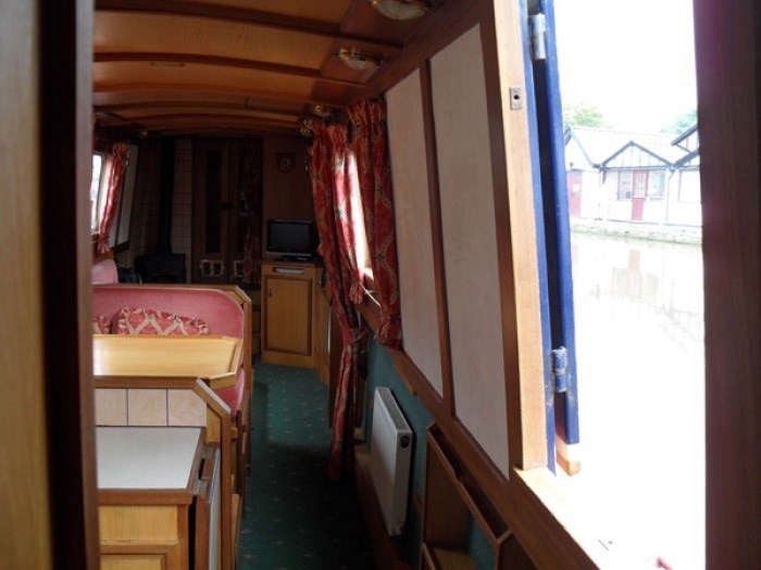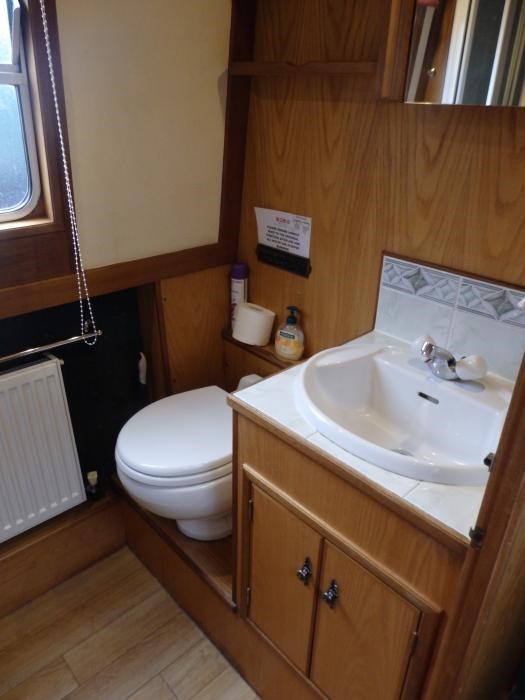There is a solid fuel stove for extra comfort but the boat has Central heating radiators throughout. There is a large table that can be fitted in Saloon (it also forms base of bed) or a separate smaller table so you can have 2 eating areas or useful 'games' playing.