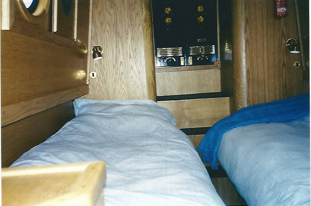 The aft cabin has two single beds which convert to a cross-double and a three foot wardrobe.