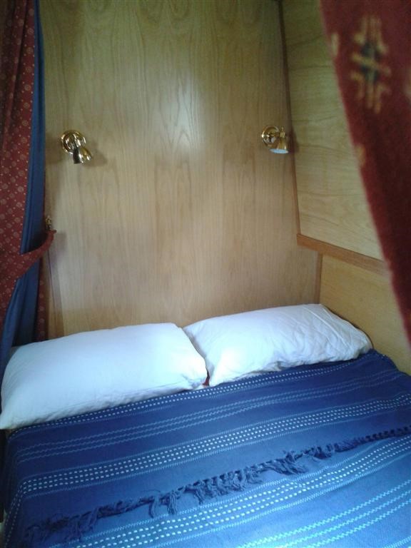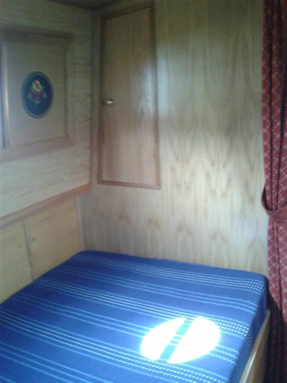 Then there is a cabin with a fixed 4' double which extends to 4'6”. There are drawers under the bed, a cupboard at the foot and an 18" wardrobe.