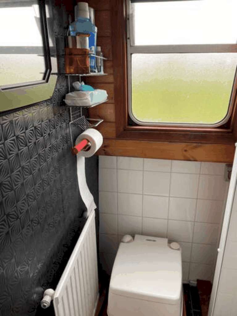 Further through on the right is a small bathroom consisting of a small functional shower and cassette toilet system. Toward the rear of the boat there’s an extremely comfortable 4ft double bed with drawer storage underneath and a small wardrobe.