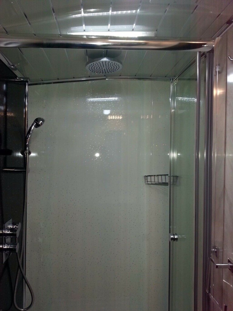 BATHROOM: Pumpout toilet Large shower. Vanity unit with hand basin.