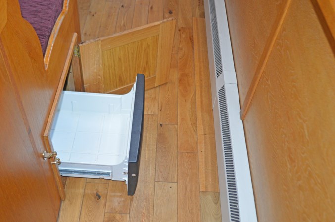 230V microwave and a slimline dishwasher. All worktops are granite. There is also a small lift up table below the side hatch opposite the galley sink area. There is plenty of storage space in both the galley and main corridor which is well equipped with kitchenware and utensils.